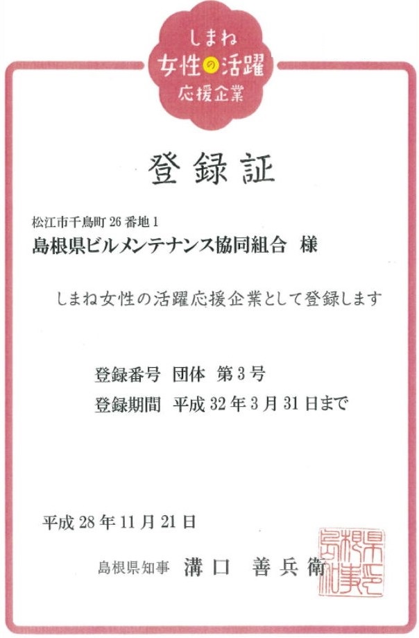 しまね女性の活躍応援企業 県知事登録 |